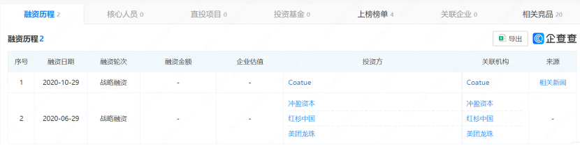 企查查數(shù)據(jù),截止目前古茗僅有兩次融資,2020年上半年,獲得了紅杉資本與美團旗下的龍珠資本等投資;當年10月底,又新增加了股東Coatue Management(寇圖資本),兩次融資規(guī)模僅為千萬級,遠不及同行的億級的融資規(guī)模。