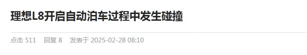 車主們反映的問題有:泊車時未識別,發生事故;泊車功能不可用;自動泊車失靈;功能缺陷等。涉及車型有L6、L7、L8、L9。