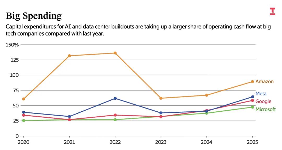 股價暴跌的另一大原因是,不少投資者很難理解 Meta 為何如此執著于 AI 基建:因為它既沒有像微軟 Azure 或谷歌云那樣的云業務來承接和分攤巨額投入,也缺乏清晰的路徑將 AI 能力轉化為實際收入。Meta 的現金流也并非充裕到可以無視投資回報率的程度。