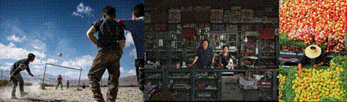 銀獎(jiǎng)作品則呈現(xiàn)出更廣闊的地理與文化視角。《帕爾米高原的足球少年》捕捉高原上少年馳騁的動(dòng)感瞬間,展現(xiàn)堅(jiān)韌生命力;《鄉(xiāng)村供銷社》以紀(jì)實(shí)質(zhì)感還原鄉(xiāng)村生活場(chǎng)景,傳遞時(shí)代變遷中的人情溫度;《豐收的蘋果攤》則以飽滿色彩與構(gòu)圖,渲染出農(nóng)產(chǎn)品豐收的喜悅氛圍。三者共同構(gòu)建起從高原到村落、從個(gè)體到群體的影像敘事譜系。
