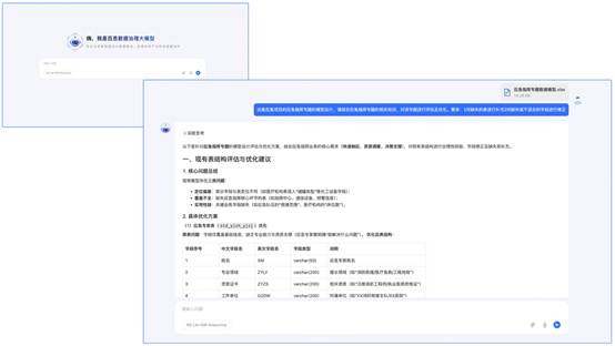 平臺采用“對話式治理”新模式,用戶通過自然語言描述業務需求,系統即可精準理解意圖并自動調度多智能體協同工作,完成數據探查、標準制定、模型設計與集成開發的全鏈路任務。該創新交互將傳統數月的設計開發周期壓縮至天級,顯著提升業務團隊參與深度和治理效率。