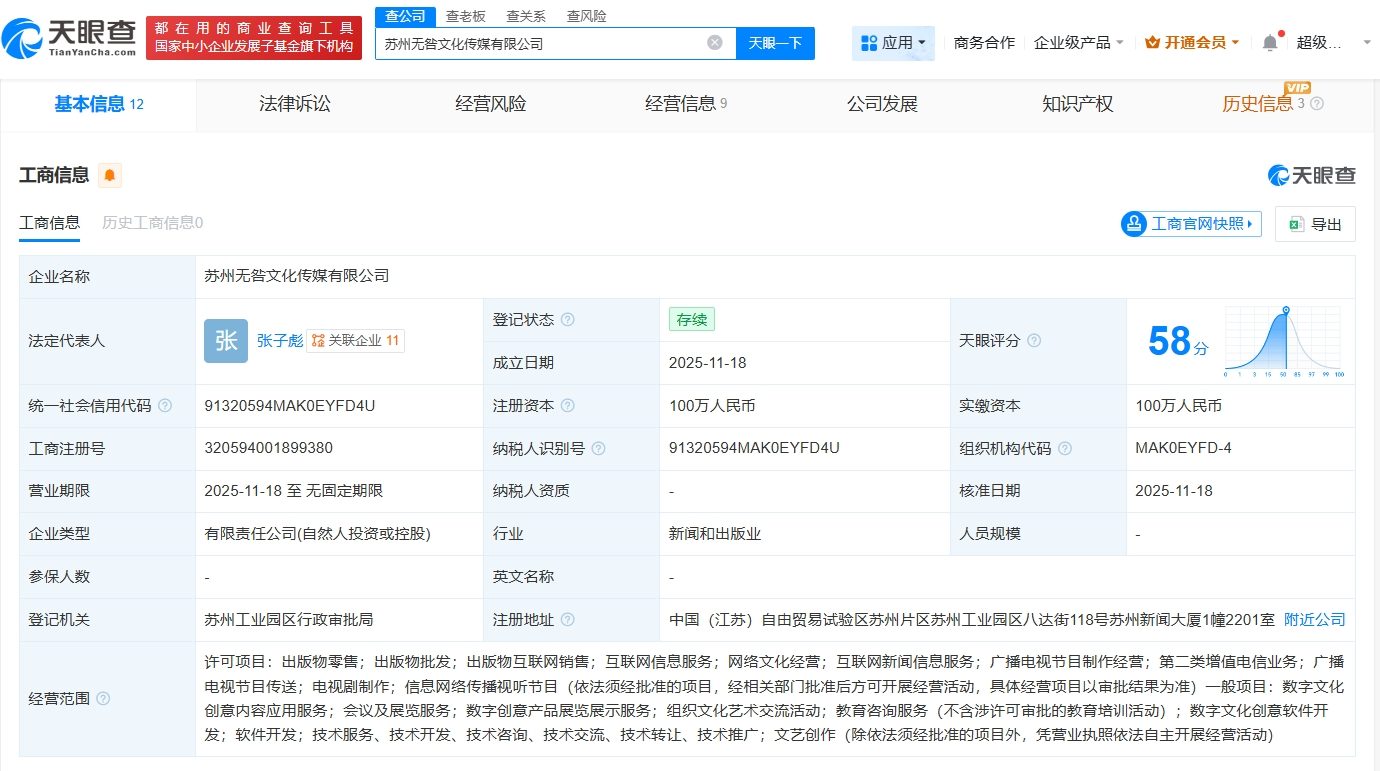 值得注意的是,近期,張雪峰投資成立蘇州無咎文化傳媒有限公司,注冊資本100萬人民幣,經營范圍包括網絡文化經營、互聯網新聞信息服務、廣播電視節目制作經營等。公開資料顯示,“無咎”核心語義為“無災禍、無過失”。