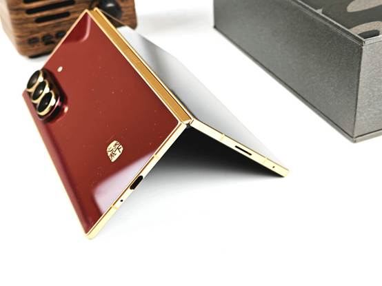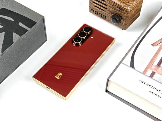 機身背部,三星W26的背部設計同樣令人矚目。其提供了“丹曦紅”與“玄曜黑”兩種配色方案,筆者此次拿到的是其中的“丹曦紅”配色版本,在光線的映照下,可以展現出沉穩而大氣的酒紅色,極具辨識度和質感。