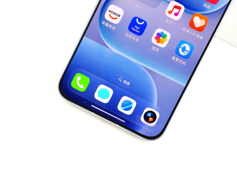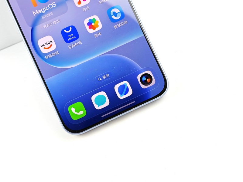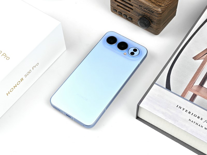 在配色方面,榮耀500 Pro提供了四款水晶靈感配色:海藍(lán)寶、星光粉、月光銀和曜石黑,每種配色都蘊(yùn)含著獨(dú)特的寓意和設(shè)計(jì)靈感,不僅滿足了不同用戶的審美需求,更讓手機(jī)成為了一種時(shí)尚配飾。此次筆者拿到的是其中的海藍(lán)寶配色版本。這款“海藍(lán)寶”智慧水晶配色靈感源自深海與海藍(lán)寶石的能量共振,通透藍(lán)調(diào)背板在不同光線下展現(xiàn)出獨(dú)特的光澤和質(zhì)感。